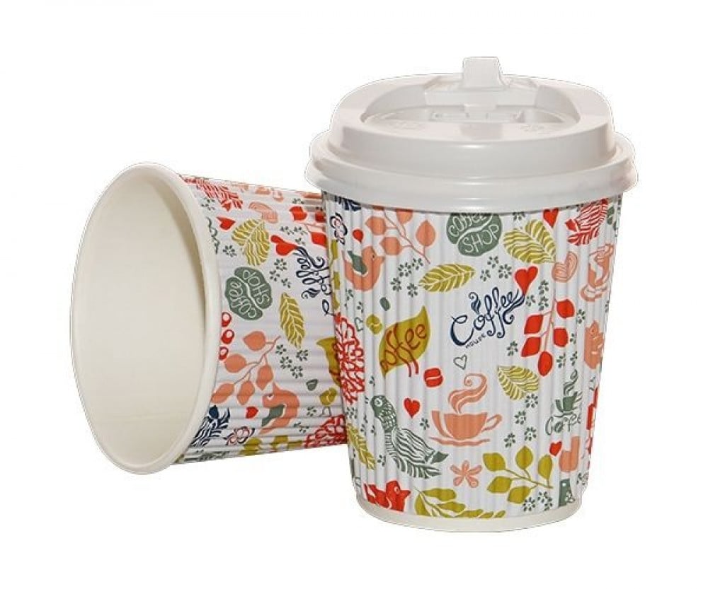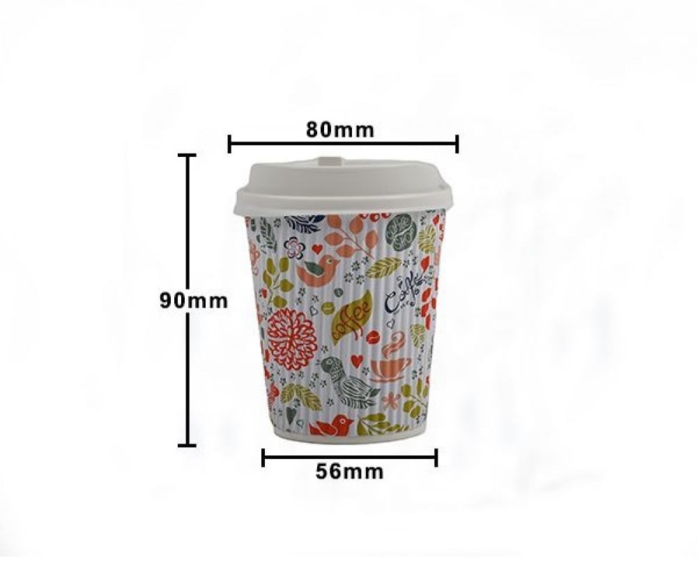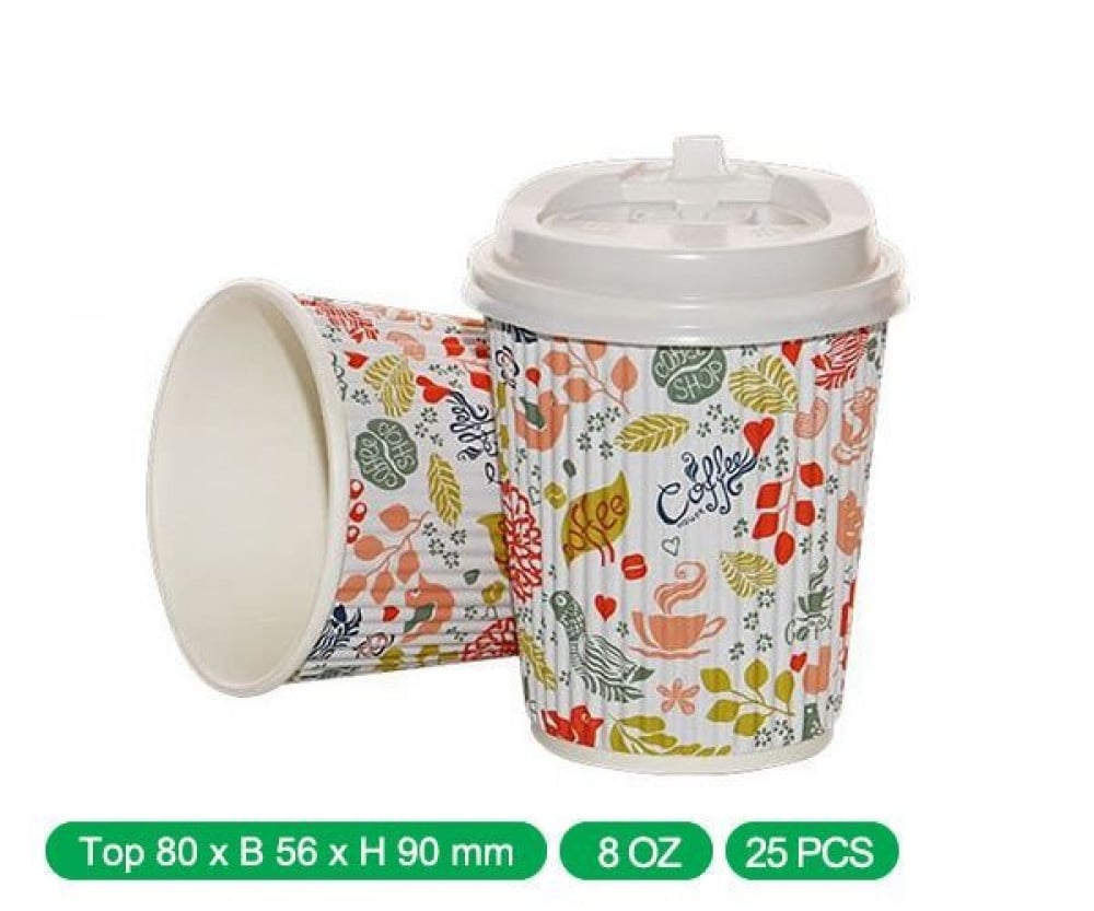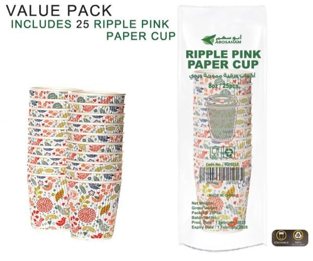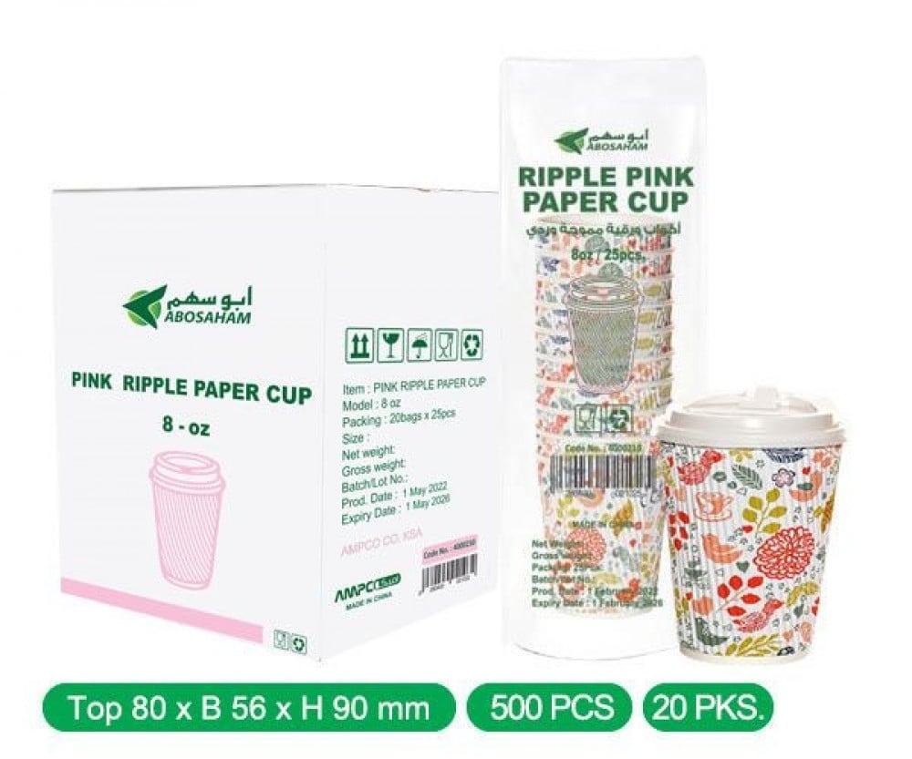 كاسات كابتشينو 8 اونص مموج وردي مع الغطاء كرتون شد 500 كوب | 25 ربطة * 25 حبة