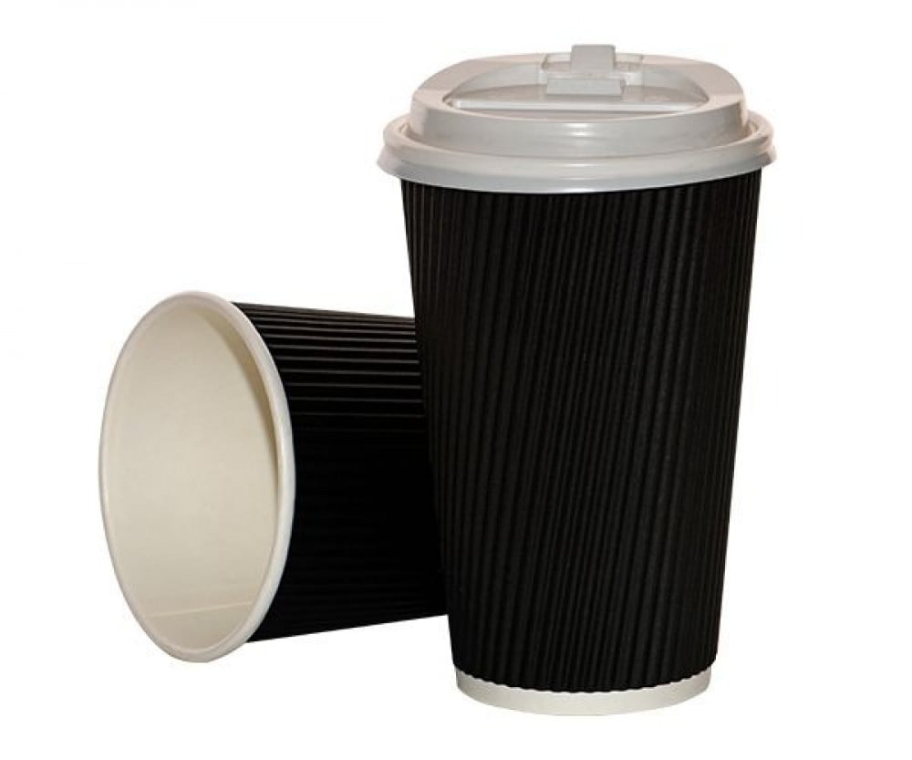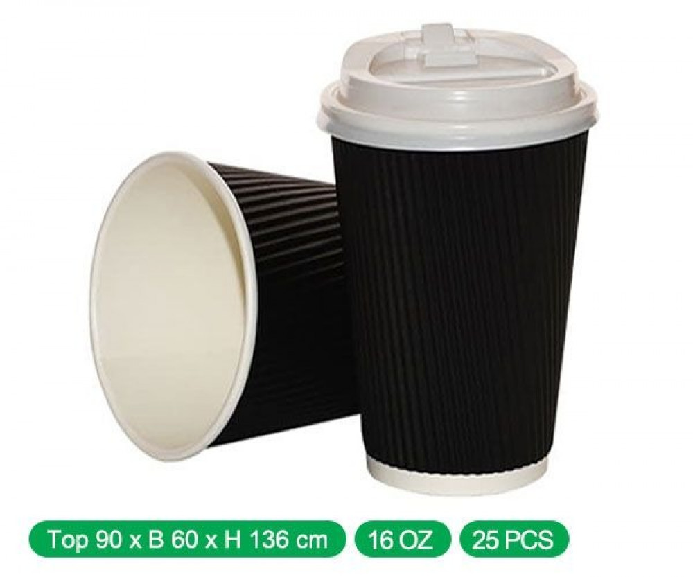 كاسات كابتشينو 16 اونص مموج اسود مع الغطاء كرتون شد 500 كوب | 20 ربطة * 25 حبة