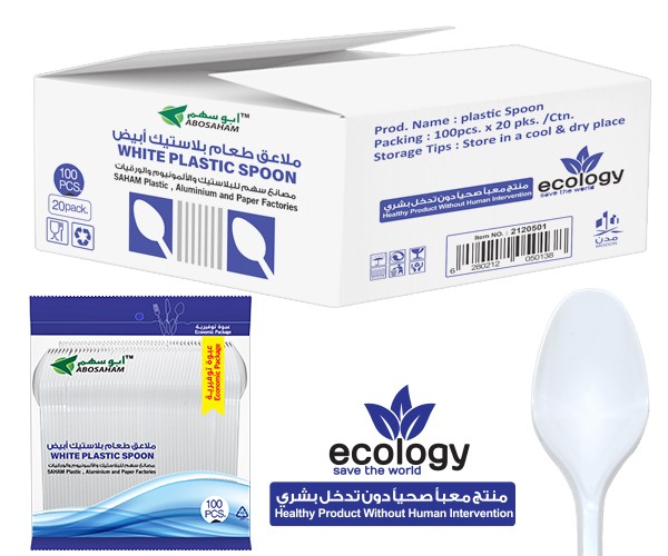ملاعق بلاستيك ابيض عادي اتوماتيك شد 20*100 حبة