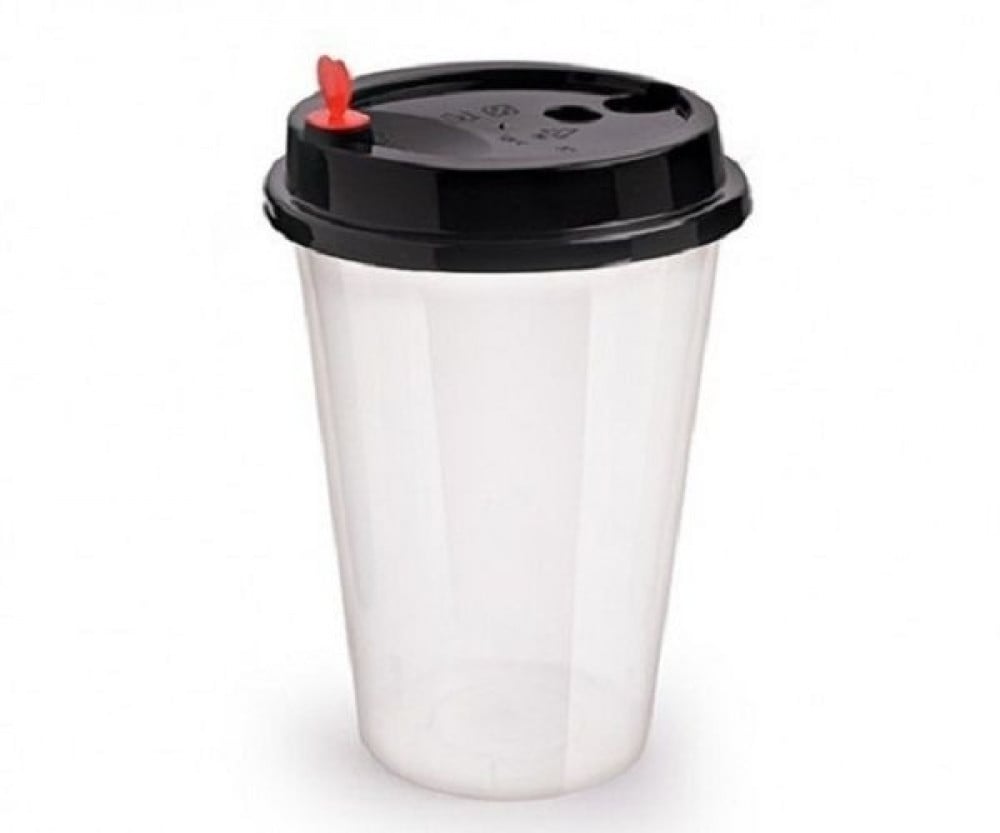 كرتون كاسات بلاستيكية شفاف + غطاء + قفل غطاء (500) حبة -360 مل