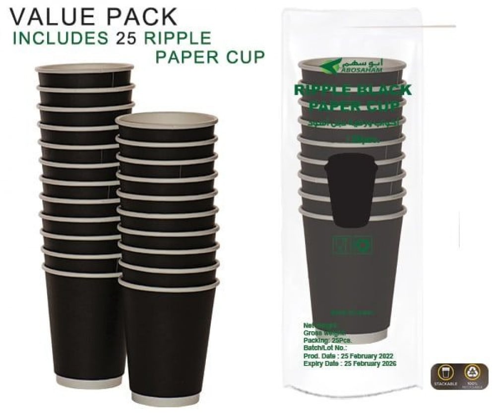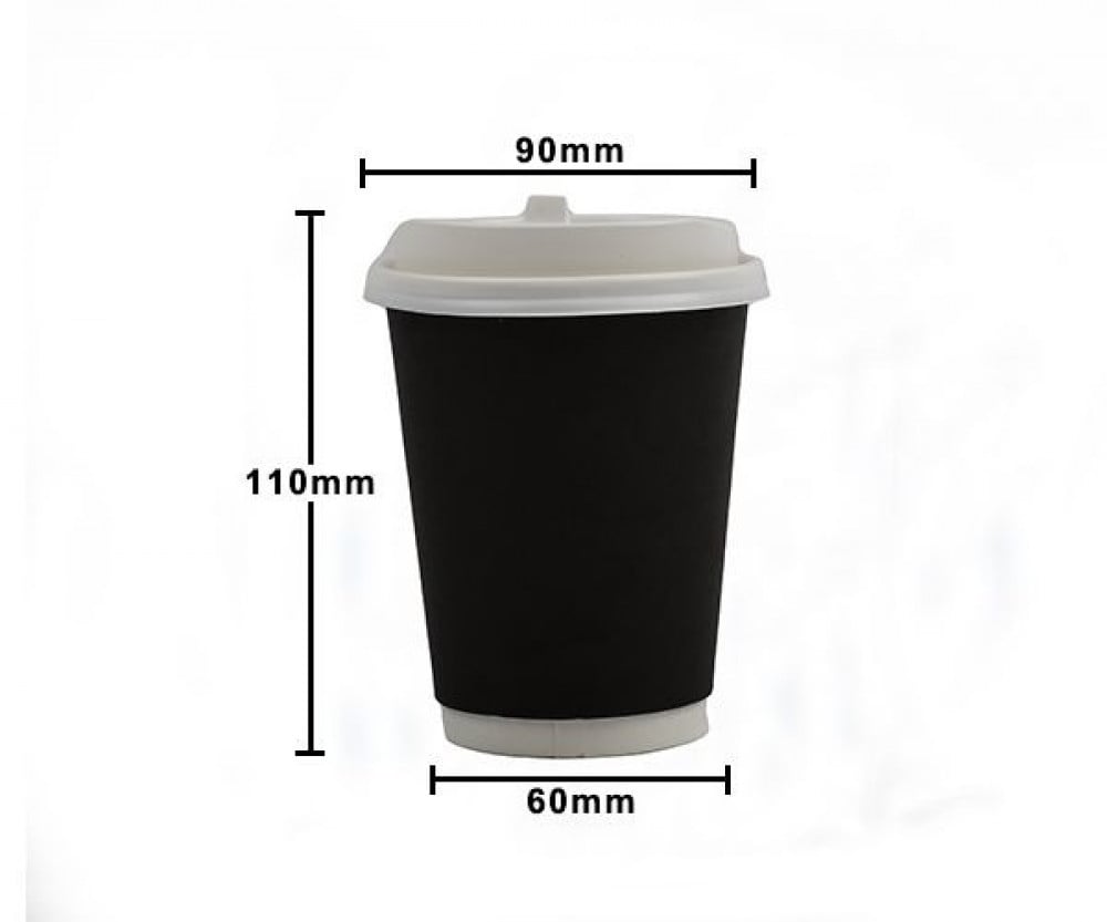 كاسات كبتشينو12اونص اسود دبل مع الغطاء كرتون شد 500 كوب | 20 ربطة * 25 حبة
