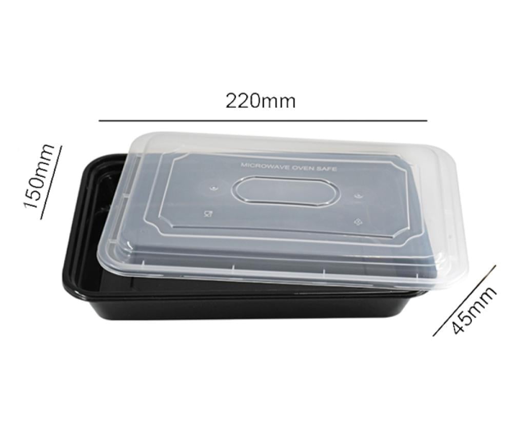 علبة طعام ميكرويف مستطيل اسود 24اونص شد150حبة